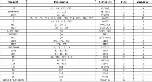7.HT366/HT328/HT338 DEMO板物料清單