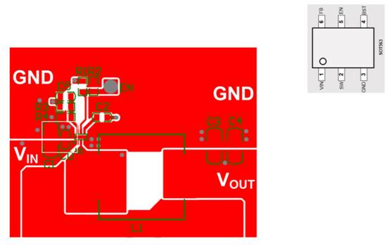 同步BUCK的方式,續(xù)流路徑要經(jīng)過芯片的GND管腳,輸入電容要接在芯片的GND和Vin之間,路徑竟可能的短粗。
