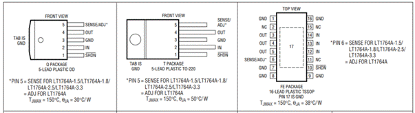 實(shí)際輸出能力與壓差和電流有關(guān),手冊(cè)中給表示的理想狀態(tài)。實(shí)際的輸出能力和壓差及電流相關(guān)。大的輸出電流值散熱問題越嚴(yán)重,如果是大電流的應(yīng)用盡量使用開關(guān)電源。