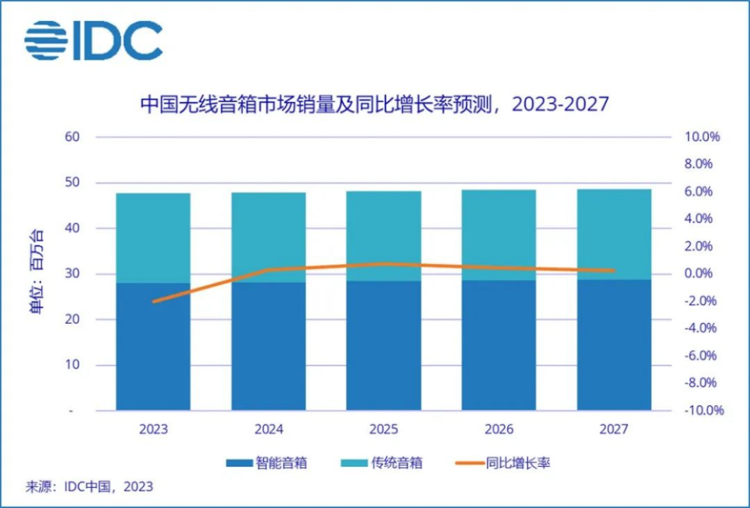 IDC預計,2023年中國無線音箱市場銷量將同比下降2%,降幅較去年有明顯收窄,然而消費環(huán)境及前期市場滲透率快速提升導致今年中國音箱市場銷售仍將面臨一定壓力。挑戰(zhàn)之下,經濟有序恢復、戶外需求回暖及人機交互優(yōu)化也為市場發(fā)展帶來了機遇。