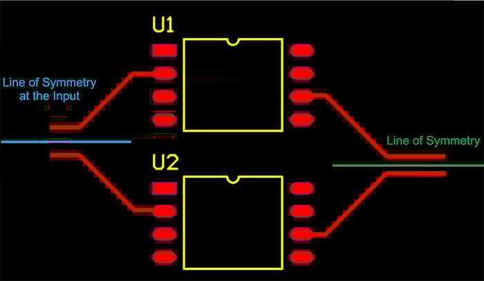 在這些情況下,我們必須考慮沿信號流路徑的不同對稱線,以保持信號對稱性。