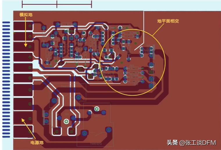 承載模擬信號(hào)的軌道應(yīng)遠(yuǎn)離高速或開(kāi)關(guān)信號(hào),并應(yīng)始終受到接地信號(hào)的保護(hù)。低通濾波器可用于避免模擬軌道周?chē)母哳l噪聲。此外,重要的是模擬和數(shù)字子系統(tǒng)的地平面不要共用 。 |