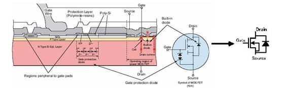 MOS管原理圖上可以看到,漏極和源極之間有一個寄生二極管。這個叫體二極管,在驅(qū)動感性負載(如馬達),這個二 極管很重要。順便說一句,體二極管只在單個的MOS管中存在,在集成電路芯片內(nèi)部通常是沒有的。下圖是MOS管的構(gòu)造圖,通常的原理圖中都畫成右圖所示的樣子。(柵極保護用二極管有時不畫)