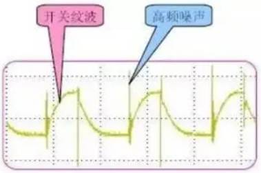 如果是AC/DC變換器,除了上述兩種紋波(噪聲)以外,還有AC噪聲,頻率是輸入AC電源的頻率,為50~60Hz左右。還有一種共模噪聲,是由于很多開關電源的功率器件使用外殼作為散熱器,產(chǎn)生的等效電容導致的。