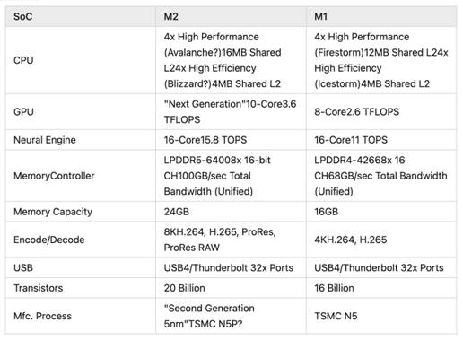 Apple M2 是 Apple 的片上系統(tǒng) (SoC),之前已經(jīng)用于MacBook Air 和 MacBook Pro 13。
