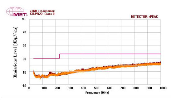 圖 5.  使用12英寸的 MAX98360 EMI 性能。帶狀線負(fù)載。