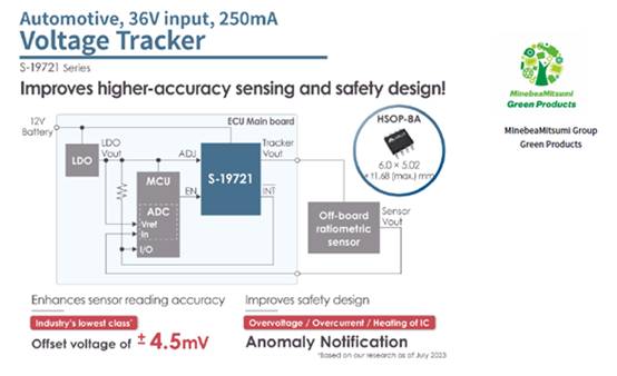 美蓓亞三美株式會(huì)社(MinebeaMitsumi Inc.) 旗下的艾普凌科有限公司(ABLIC Inc.,總裁:田中誠(chéng)司,總部地址:東京都港區(qū),下稱“ABLIC”)今天推出了車載用電壓跟蹤器S-19721系列。