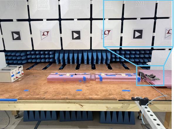 圖3.EMI測(cè)試室(50 mm)中的CISPR 25電流探頭傳導(dǎo)輻射(CE)設(shè)置