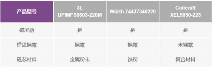 表1.測(cè)試所用電感的技術(shù)規(guī)格比較