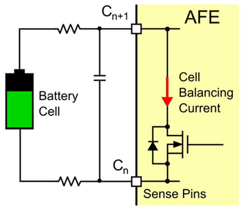 電池均衡的另一個(gè)重要因素是物理連接。例如,MP279x AFE 系列使用相同的引腳進(jìn)行電壓采樣和均衡。這極大地減小了 IC尺寸,但也意味著不能同時(shí)均衡連續(xù)的電池,因此增加了完成電池均衡所需的時(shí)間。采用專用均衡引腳可節(jié)約均衡時(shí)間,但卻會(huì)顯著增加IC 尺寸和總成本。