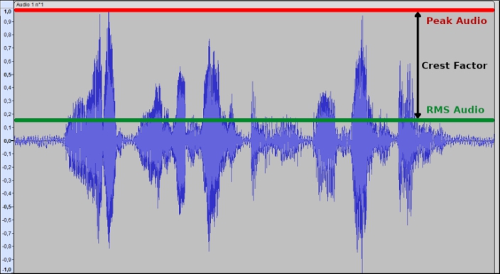 圖1:峰值音頻電平和RMS音頻電平之間的關(guān)系