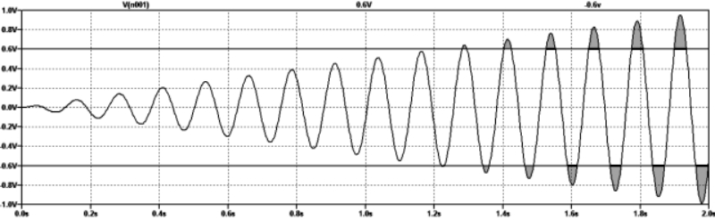 ·  聲音再現(xiàn)高度失真,因為上、下峰值的音頻信號被剪切。