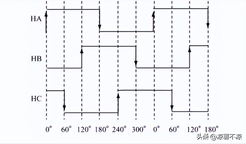 三相霍爾元件輸出的位置信號,每隔60度電角,便有一個位置信號發(fā)生跳變,這樣在一個周期內(nèi)有6個轉(zhuǎn)子位置可以被確定。