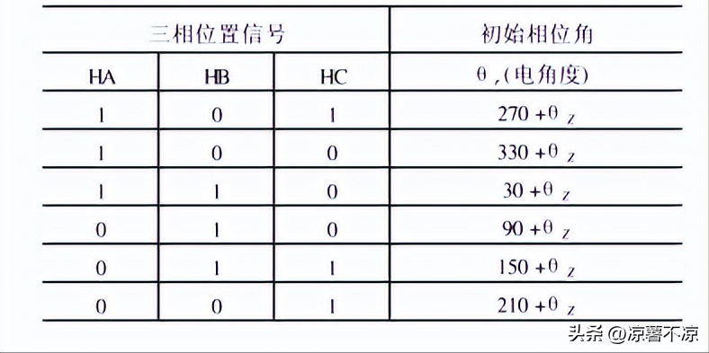 當(dāng)霍爾傳感器輸出的三相位置信號,根據(jù)以上原則確定的三相位置信號與電壓空間矢量的初始相位角。