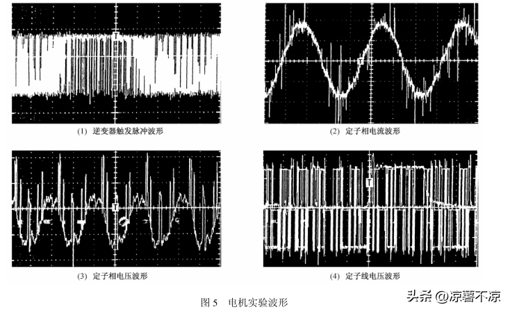 5kW;Un=220V;In=3。55A;fn=50Hz;n=1400r/min。電機(jī)穩(wěn)態(tài)運(yùn)行時,逆變器的驅(qū)動波形定子電流、電壓的波形,實(shí)驗(yàn)結(jié)果表明了控制方案的優(yōu)良性能。