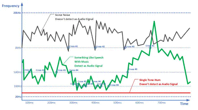 人耳可以聽(tīng)到的頻率范圍約為 20 Hz 至 20,000 Hz。該范圍可以包括單音,例如變壓器嗡嗡聲或來(lái)自無(wú)線(xiàn)電系統(tǒng)的白噪聲。這并不是說(shuō)這些聲音在音頻系統(tǒng)中是理想的。高強(qiáng)度的此類(lèi)聲音會(huì)損害聽(tīng)力。人類(lèi)語(yǔ)音、音樂(lè)和自然聲音具有不斷變化的不同頻率。因此,音頻檢測(cè)器應(yīng)該記錄頻率變化并根據(jù)這些變化挑選有用的音頻信號(hào)。