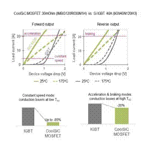 在工業(yè)電源應(yīng)用中,電子設(shè)計人員還可以通過使用 SiC MOSFET 來獲益,與 IGBT 等傳統(tǒng)硅基解決方案相比,它可顯著提高效率、縮小散熱器尺寸并降低成本。 SiC 技術(shù)可實現(xiàn)單位面積極低的 R DS(on) 、高開關(guān)頻率以及體二極管關(guān)斷后發(fā)生的反向恢復(fù)階段中可忽略不計的能量損失。