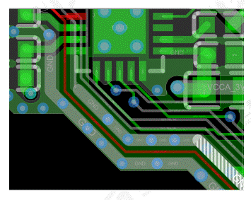 6、Audio in和Audio out不用控制阻抗,走線需要加粗至15mil,全程包地處理,間隔300mil必須打一個(gè)地過(guò)孔;