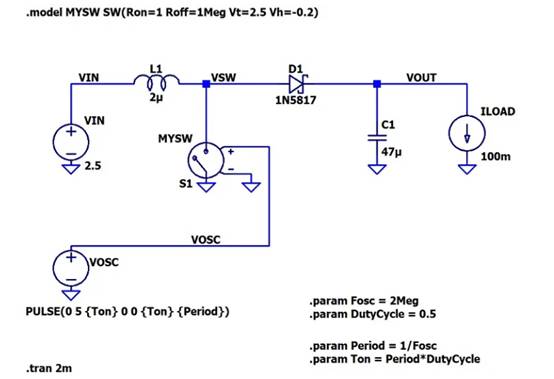 現(xiàn)在我將為 LTspice 創(chuàng)建一個(gè)升壓轉(zhuǎn)換器設(shè)計(jì)。與 LTspice 降壓轉(zhuǎn)換器一樣,我將使用壓控開關(guān)而不是晶體管。