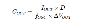 您可以使用以下公式根據(jù)預(yù)期輸出電流 (I OUT )、占空比 (D)、開關(guān)頻率 (f OSC ) 和所需輸出紋波 (ΔV OUT ) 計(jì)算滿意的輸出電容: