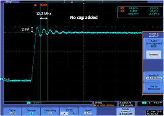 3 測(cè)量在未采用 RC 緩沖器的情況下 VDS 振鈴的 fo