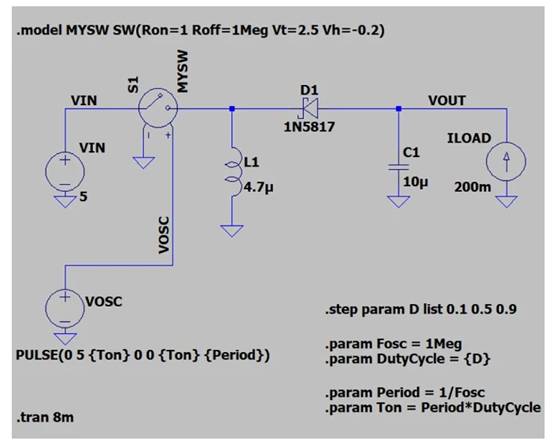 圖 2.在 LTspice 中實現(xiàn)的反相降壓-升壓轉(zhuǎn)換器。