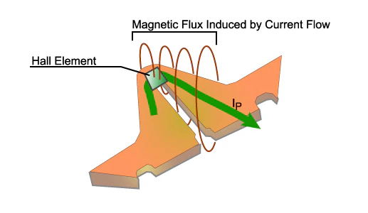 ACS71x 系列基于霍爾效應(yīng)的電流傳感器 IC 通過感測電流經(jīng)過霍爾元件附近時產(chǎn)生的磁場來測量電流(見圖 1)。它們直接測量該磁場,無需使用磁集中器,而磁集中器是其他磁性設(shè)備的常見功能(例如,用于 ACS75x 系列電流傳感器 IC 的 Allegro MicroSystems CA 和 CB 封裝)。
