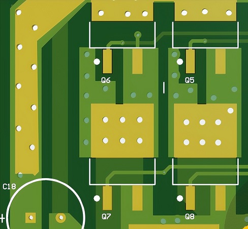 (4)注意大電流產(chǎn)生的熱量,熱量的累積會產(chǎn)生器件損壞,產(chǎn)品損壞,大電流的功率路徑更是要小心,一般會大面積鋪銅(銅皮是很好的熱導(dǎo)體),多打過孔(要盡量連接銅皮或者散熱焊盤,越大的孔散熱越好,但是不要使用機械孔),把外部阻抗焊層挖開,讓銅皮直接裸露,在PCB設(shè)計散熱區(qū)域使用散熱片等方式,來加快散熱。