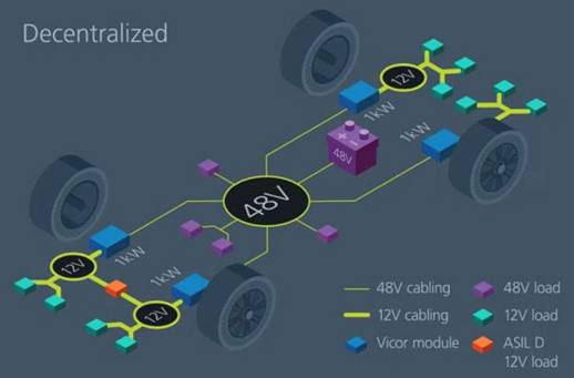 圖 2:通過為關鍵系統提供 48 V 電源,汽車設計師可以減少線束的重量和成本。(圖片來源:Vicor)