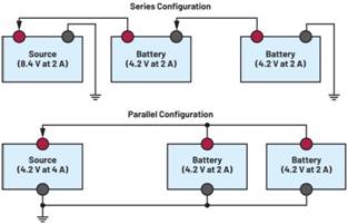 圖1.串聯(lián)和并聯(lián)電池配置。