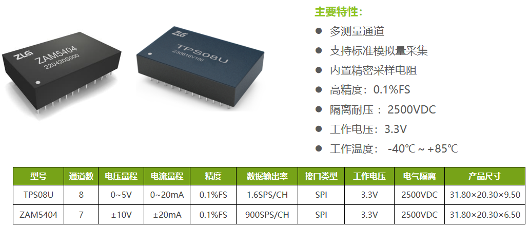 ZAM5404 是一款帶有電氣隔離功能的高精度模擬量采集模塊,集16 位ADC、信號調(diào)理電路、信號隔離和電源隔離于一體,可以實現(xiàn)高精度的電流和電壓采集,可用于±20mA/±10V 工業(yè)標準的傳感器輸出信號采集具有8 個采集通道,包括4 個電流采集通道和4 個電壓采集通道。 |