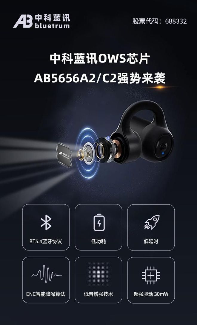 | 中科藍訊推出新款應用于無線藍牙耳機的藍牙音頻芯片AB5656A2/C2,支持藍牙5.4連接協(xié)議,適用于OWS耳機。