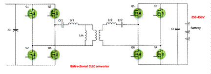 DC-DC級通常采用隔離式拓撲,使用變壓器提供隔離,主要目的是根據(jù)電池的充電狀態(tài)調(diào)節(jié)輸出電壓。盡管可以采用半橋拓撲,但當前主要采用雙有源橋(DAB)轉(zhuǎn)換器方案,例如諧振轉(zhuǎn)換器(比如LLC、CLLC)或相移全橋 (PSFB)轉(zhuǎn)換器。近來,諧振轉(zhuǎn)換器,特別是LLC和CLLC,因其具備多項優(yōu)勢而受到廣泛關(guān)注,具體優(yōu)勢包括寬軟開關(guān)工作范圍、雙向工作能力以及將諧振電感和變壓器整合到單個功率變壓器中的便利性。