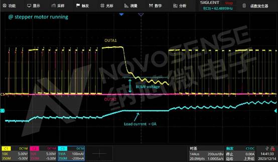 步進電機在運行狀態(tài)下,反電勢和相電流存在特定關系,可以反應步進電機的運行狀態(tài)。NSD8381-Q1內置點電機的反電勢檢測模塊,會在每個周期的電流過零點,對電機反電勢進行采樣。通過反電勢電壓和內置閾值電壓對比,判斷電機運行狀態(tài)。