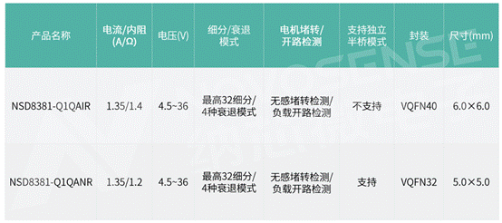 NSD8381-Q1同時提供VQFN40(6mm x 6mm)和VQFN32(5mm x 5mm)兩種封裝,更小巧的尺寸,助力客戶PCBA更高集成度,控制BOM成本。