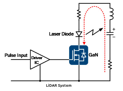 在激光雷達領域,氮化鎵器件的Qg、Qoss等參數相比硅器件提升1.5~3倍;與早期激光雷達產品相比,采用氮化鎵能夠將開關速度提升13倍,脈沖寬度減小五分之一。當前,L2輔助駕駛使用MOS方案識別距離只有100m,L2+/L3輔助駕駛必須達到200m/300m的中遠距離識別,只有使用窄脈沖、大峰值電流、高功率的氮化鎵方案,才能為自動駕駛激光雷達提供高性能保障。