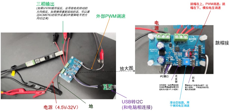 內(nèi)置MOS大電流三相無刷直流電機驅(qū)動芯片ACM6763轉(zhuǎn)動電機的操作步驟