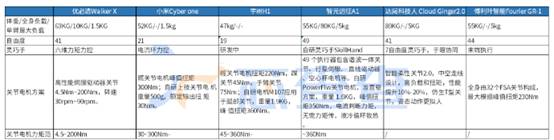 圖注:國內(nèi)幾家主要人形機器人的關(guān)節(jié)電機對比(不完全統(tǒng)計,芯查查制表)