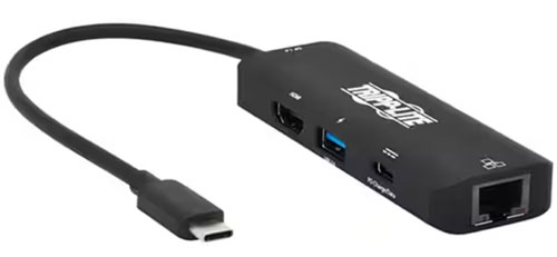 圖 4:U444-06N-H4GUC2 多端口適配器可為計(jì)算機(jī)增加 HDMI、以太網(wǎng)、一個(gè) USB-C 充電端口和一個(gè) USB-A 端口。(圖片來源:Tripp Lite by Eaton)
