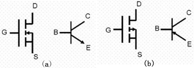 1、 場效應(yīng)管的源極S、柵極G、漏極D分別對應(yīng)于三極管的發(fā)射極e、基極b、集電極c,它們的作用相似,圖5(a)所示是N溝道MOS管和NPN型晶體三極管引腳,(b)所示是P溝道MOS管和PNP型晶體三極管引腳對應(yīng)圖。