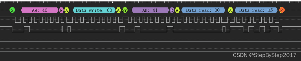 因此對(duì)于該示例,該命令為I2C_Read(0x40,0x00,0x41,[0x00],[0xD5])