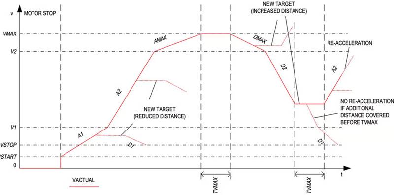 圖 6:TMC5240 提供八點(diǎn)斜坡,支持實(shí)時(shí)目標(biāo)位置更改,可實(shí)現(xiàn)順暢的模式轉(zhuǎn)換。(圖片來源:Analog Devices)