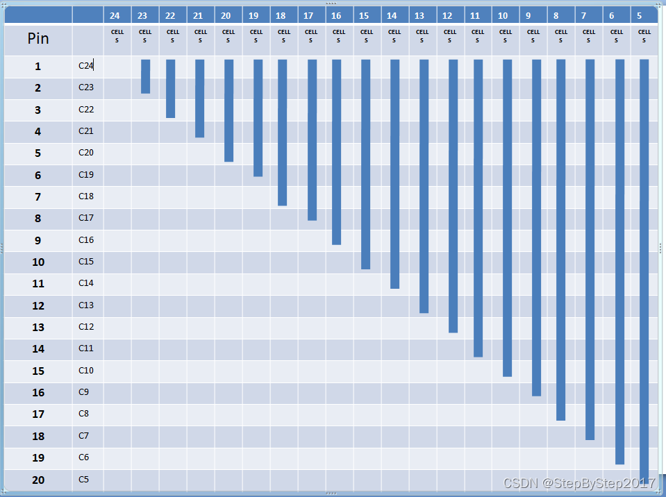 集澈DVC11系列分別有DVC1124,DVC1117,DVC1114,DVC1110等4個芯片,都是4串起步,4-24,4-17,4-14,4-10串,這里主要說明DVC1124減少串?dāng)?shù)的接法。