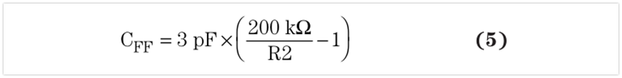 如果設(shè)計人員必須使用前饋電容來提高穩(wěn)定性,且一些轉(zhuǎn)換器的內(nèi)部補償要求特定的CFF值。這種情況下,不應(yīng)使用方程式4。設(shè)計人員應(yīng)使用產(chǎn)品說明書的建議設(shè)計方程式。例如,TITPS61070便有高側(cè)反饋電阻器(R1)的內(nèi)部補償。它的產(chǎn)品說明書建議使用下列設(shè)計方程式,用于添加一個與R1并聯(lián)的電容: