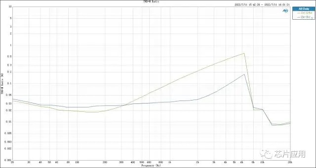 另外在材料上,一體成型和磁封膠對功放性能也有影響,ACM8625為例,相同配置下,只是更換飽和電流差不多,不同材質的電感對比THD+N的對比: