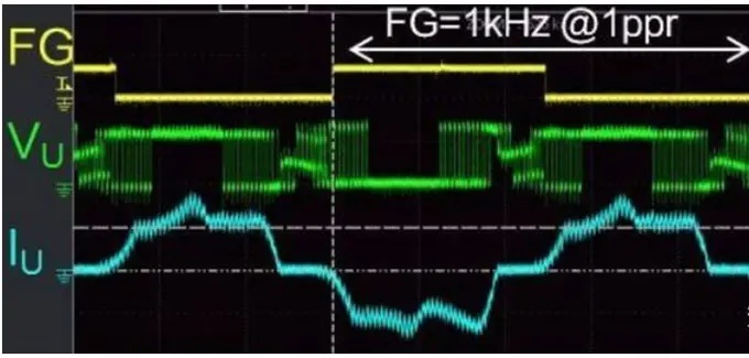 使用的是SVPWM波,輸出的是3相正弦波電壓,電機相電流為正弦波電流?梢哉J為在一個電氣周期內進行了多次的連續(xù)變化換向,無換相電流突變。正弦波控制相比方波控制,其轉矩波動較小,電流諧波少,控制起來感覺比較“細膩”。