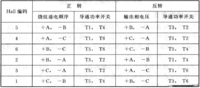 根據(jù)霍爾傳感器位置,進(jìn)而按照一定規(guī)律給三相繞組通電,從而來實(shí)現(xiàn)電機(jī)的控制?紤]到每個(gè)電機(jī)霍爾傳感器安裝方式不同,換相開關(guān)表會(huì)有一定的區(qū)別。具體可以根據(jù)廠商提供的資料或?qū)崪y(cè)電機(jī)霍爾輸出來確定關(guān)系。