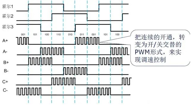 在BLDC電子換相的基礎(chǔ)上,通過更改導(dǎo)通時(shí)PWM占空比即可改變等效的輸出電壓, 從而更改來實(shí)現(xiàn)調(diào)速。