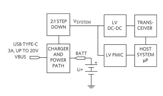 通過使用更多電池(串聯(lián)或并聯(lián))可獲得更高的電池容量。例如,要使容量翻倍,簡單的方法是從單電池(1S1P,即 1S)移動到并聯(lián)的兩個(gè)電池(1S2P,即 2P)。該解決方案使輸出功率翻倍,并保持下游電子設(shè)備的額定電壓,同時(shí)增加從電池中吸取的電流。但是,問題出現(xiàn)在給電池充電時(shí),因?yàn)闃?biāo)準(zhǔn) USB-C 電纜的額定電流為 3A。給 2P 電池充電需要兩倍的電流,這可能會超過 3A 的限制。或者,充電速率可能會減半,導(dǎo)致充電時(shí)間加倍。