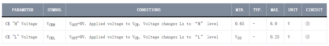 在實際的產(chǎn)品中是如何規(guī)定的,請看電壓穩(wěn)壓器的CE端子的High電壓、Low電壓。